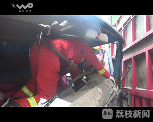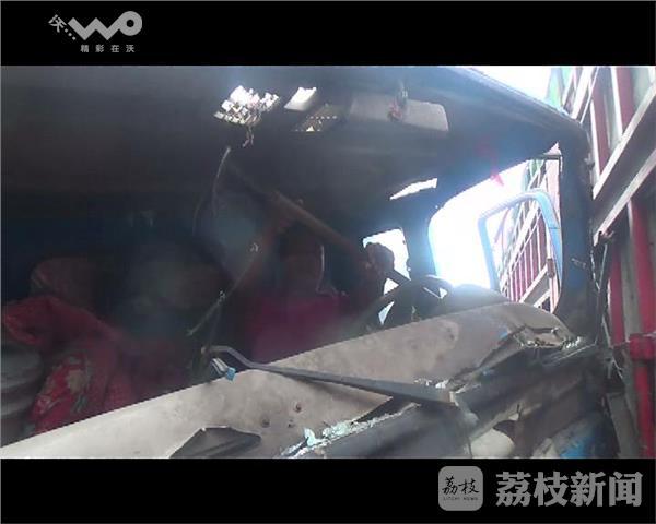 据红色大货车车主胡先生了解,当时他正驾车从南向北行驶,正在过323省道扎道右拐向西行驶时,突然间车尾位被运输垃圾的环卫车撞上,当时就懵了,下车发现有人员被困后立即拨打了报警求救。