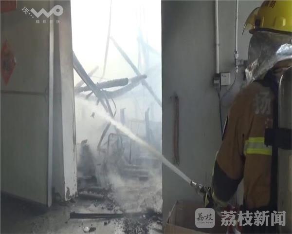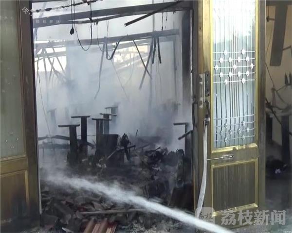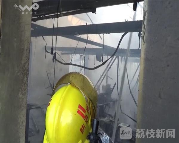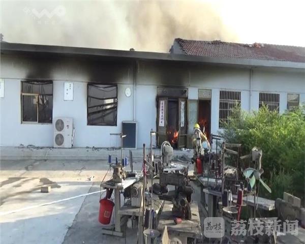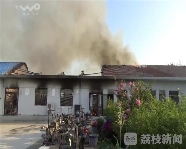 今天(8月1日)凌晨5点40分左右,扬州高邮市马棚镇三号河路一家服装厂车间突然起火,火势较猛,大量纺织机械和衣物烧毁,厂里的工人自救未果,报警求助。当地公安、消防部门接警,迅速前往扑救。厂方人员怀疑,与电路起火有关。可以看到,一处人字顶的单层厂房起火,窗户烧坏,部分屋顶烧塌,砖瓦不时摔落,火势已呈猛烈燃烧阶段,往相邻的厂房蔓延,发出噼啪的声响,黑烟直蹿。现场被工人抬出十多台纺织机械。消防队员闻讯赶到后立即铺好水管,一组从厂房正面灭火,一组到背面压制火势,防止火灾蔓延。厂里负责人说,当时车间没人,火很大,浓烟滚滚,里面放置的机器和衣物几乎全被烧毁,估计是电路起火,损失惨重。经过约一小时的扑救,明火被消防队员全部扑灭。现场热浪滚滚,消防队员顶着高温,对车间全面喷水降温,防止复燃。