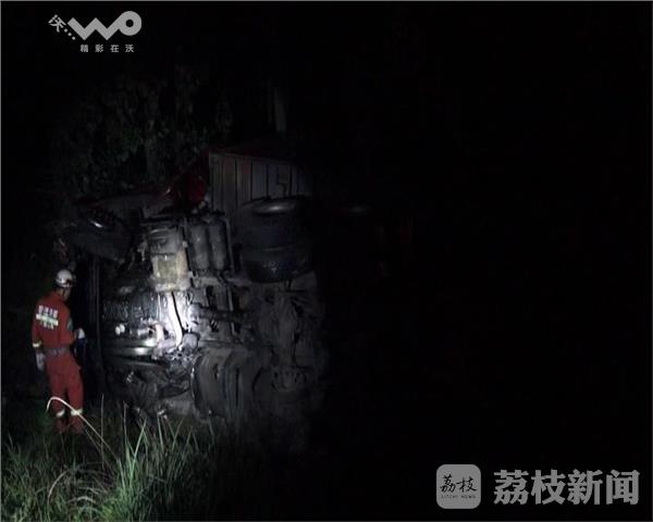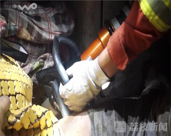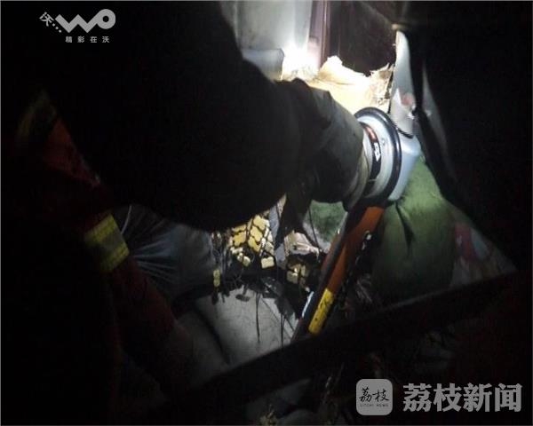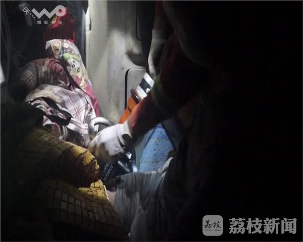 今天凌晨两点,京沪高速往上海方向784公里处发生一辆大货车侧翻。宿迁市沭阳消防接到报警后,立即出动一辆抢险救援车赶赴现场,同时调集一辆重型吊车到场。官兵到达现场后发现货车已经冲出高速路护栏,侧翻在高速公路的沟槽里。车头严重变形,车内两人,驾驶员自救脱困,另一人双腿被死死的卡在变形的车厢内。车头受到挤压空间十分狭小,只能一名消防员钻到车厢内进行查看。由于车厢内非常闷热,被困人员开始出现头晕、心跳加速、冒汗等现状,疑似中暑。