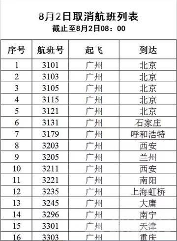 荔枝新闻记者从南航公司获悉,受今年第4号台风“妮妲”影响,截至8月2日8:00,南航共计划取消本日航班286班,其中广州进出港181班,珠海24班,深圳58班,香港4班。