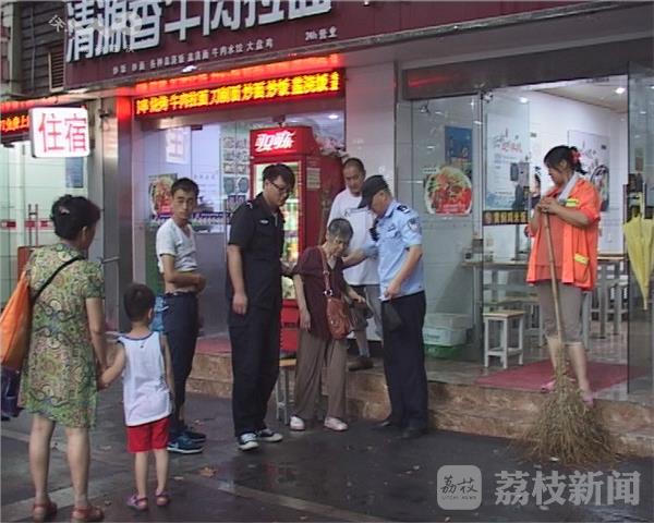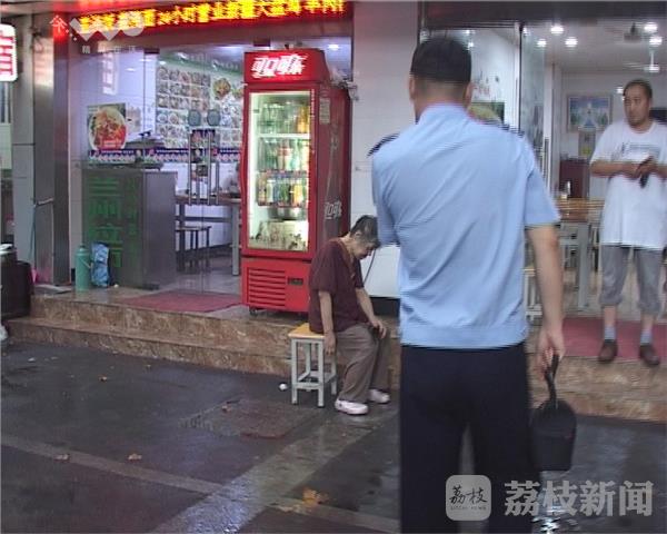 8月2日下午16:30分左右,南京鼓楼区中山北路422号,店老板吴某报警,称店前有一八旬残疾老人腿脚不便,浑身湿透,现在走路困难,报警求助,接警后民警随后赶至现场。
