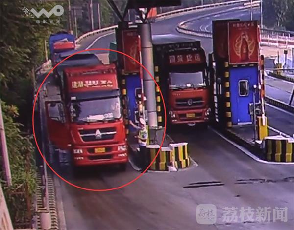 交警在京沪高速新沂东收费站将这涉嫌超载的红色大货车拦下,驾驶员没有出示驾驶证,而是向交警出示了一张闯禁区的罚单,请求民警照顾。不料,坐在副驾上的一名女子从车上下来,得知民警要对其违章进行处罚,女子立马撒泼起来。