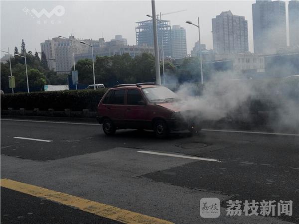 今天(8月5日)上午9:30左右,一红色轿车由北向南行驶在南京龙蟠中路逸仙桥附近左侧车道上突然自燃,驾驶员下车后跑到路边报警。几分钟后浓烟从发动机盖窜出,火越来越大,经过的车友用自车灭火器灭火。数分钟后119赶到,将火扑灭,然而,车辆基本报废。事故具体原因有待调查。