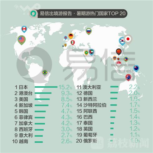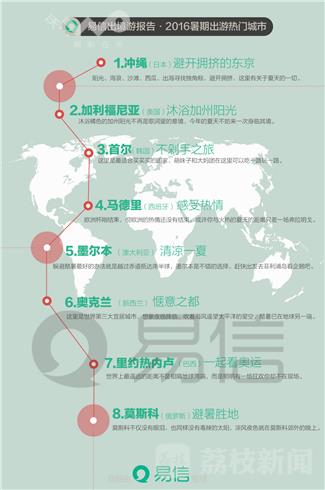 随着所有考试尘埃落定,从6月中旬的毕业季旅游到7、8月的暑期出境游日渐火爆,移动社交APP易信结合暑期易信用户使用易信国际漫游情况及相关调查,发布《2016暑期出境游报告》。报告显示,日本成今年暑期国人光顾最多的国家,同时,欧洲杯也引发暑期欧洲游热。