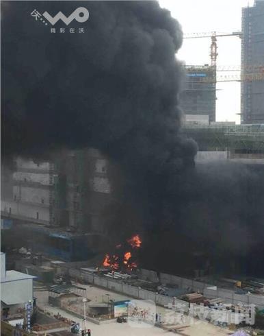 今天下午15时20分左右,位于苏州市狮山路龙湖时代天街在建工地发生火灾,现场浓烟滚滚,很是吓人,消防出动多辆消防车前往救援。