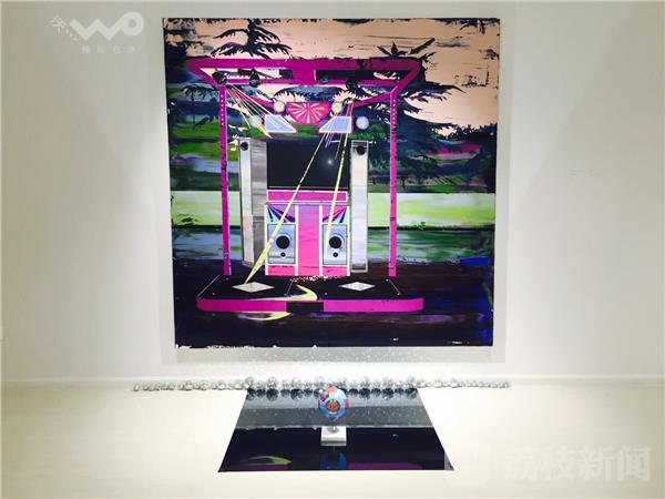 张宁飞创作的基本动因在于他对时尚与科技的兴趣,观者可以将画面上耀眼的色光理解为宇宙的星河,负片的效果是城市的剪影,不确定的线条是空气的颤动等等。在创作上,张宁飞虽依然运用波普的色调,将颜料大块平涂;运用拼接的样式,将物像层叠重组;呈现出一幅幅充满电子迷笛般的梦幻场景。但不再是对已有的事物的简单描摹,不再碎片化释读他成长经验世界中的某一分节。而是面对生态危机与生存威胁令他产生的不安与焦虑,这些种种反映在绘画上,构成了张宁飞近期作品的一些主要特征:多元、解构、戏拟、不确定和非连贯性。创作者的经验与对当下生活的感受结合起来,最终呈现在画面上的这些象征符号,往往就是人们面对当今生存状态的普遍感受。