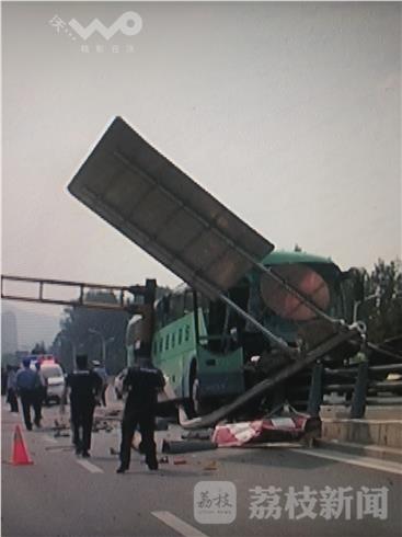 今天上午八点多,一辆镇江句容开往南京的大客车在龙蟠路南京站附近意外碰撞分隔路牙,还撞断了限高架,车上多人受伤被困。