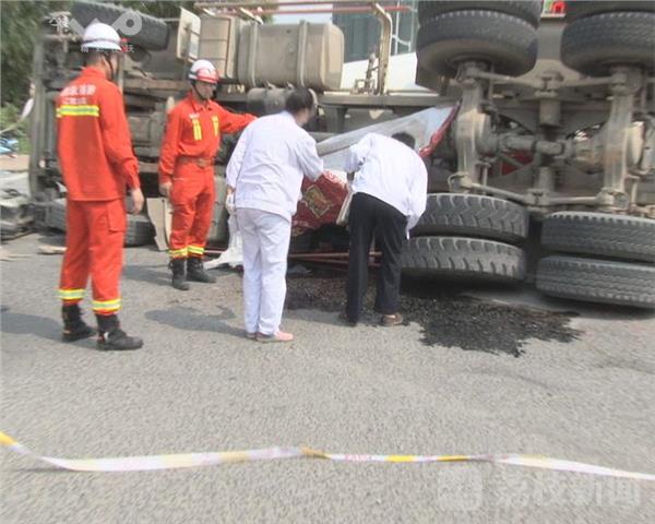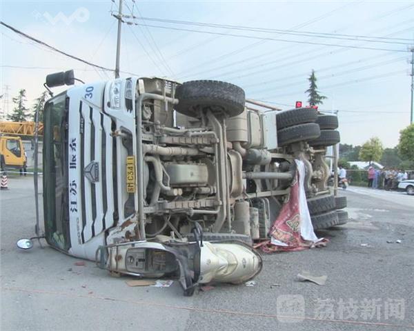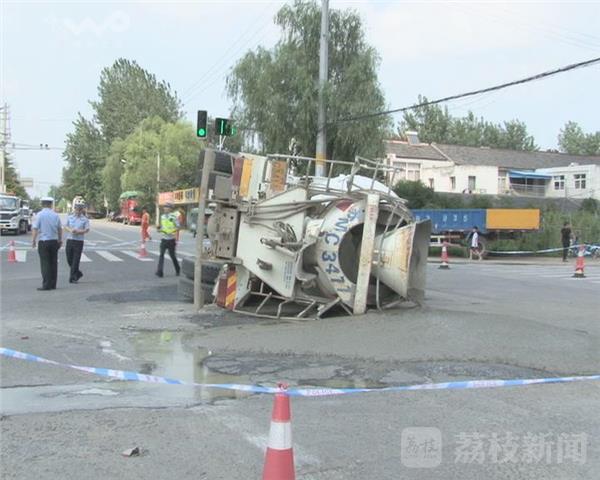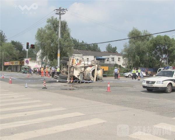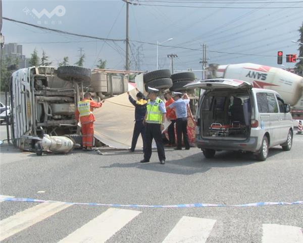 事故发生之后,南京交警十大队民警迅速赶到现场,设置路障、保护现场,呼叫救护车过来救助伤者。荔枝新闻通讯员在现场看到,一辆大型水泥搅拌车侧翻在红绿灯路口中间,车头顶着一辆踏板电瓶车,骑车的男子被搅拌车压在底下,已经死亡。肇事的水泥搅拌车驾驶员也投案自首。