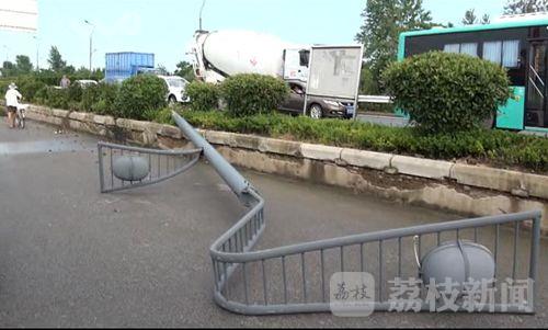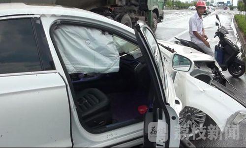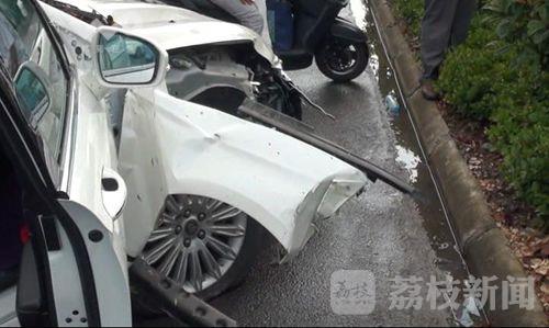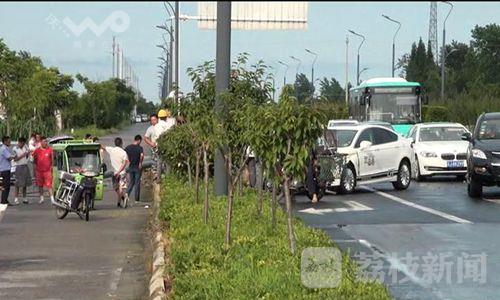 在十字路口东侧省道331线公路上,一辆白色轿车头朝西北方向停在由东向西的车道里,前保险杠右侧断裂,大灯损坏,右前轮胎爆胎,驾驶室内的三只安全气囊全部打开,前挡风玻璃右侧呈网格状开裂,车前左角的大灯外壳破碎,叶子板扭曲变形,一辆装运鲜活水产品的货车停在快车道里,车体部位没有发现明显的损坏。在肇事轿车东侧不远处,一根路灯杆被撞断,整个倒在非机动车道里,而再向东约二十多米的绿化隔离池里,栽种的绿化树木是东倒西歪,有的甚至被连根拔起。满头是汗的肇事轿车驾驶员告诉记者,车辆行驶到该路段,他为避让前方的一辆车子,就采取猛打方向进行避让的,结果导致车辆失控爬上绿化隔离池,撞倒路灯杆后返回到车道内,又与同方向行驶的一辆货车发生碰刮,没有造成人员伤亡。