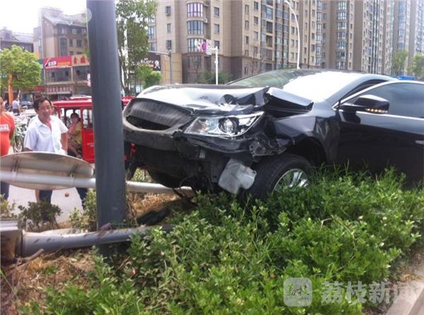 昨天(8月8 日)下午二点左右,淮安市涟水县炎黄大道与海安路交叉路口发生一起两车相撞,其中一车"骑"上绿化带的车祸,事故导致一名驾驶员受轻伤。