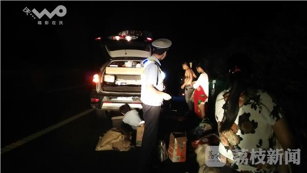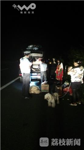 2016年8月7日凌晨零时许,镇江公安交警高速二大队民警驱车在常合高速镇江段巡逻,当警车由东向西巡逻至166公里处时,民警发现在应急车道停着一辆SUV,而车旁居然有几个小孩在玩耍,一位妇女一手抱小孩一手牵条狗已经站到了行车道上,车旁物品杂乱不堪,该车仅在车后5米处放了个三角牌,车辆也未开双闪灯,情况十分危险。