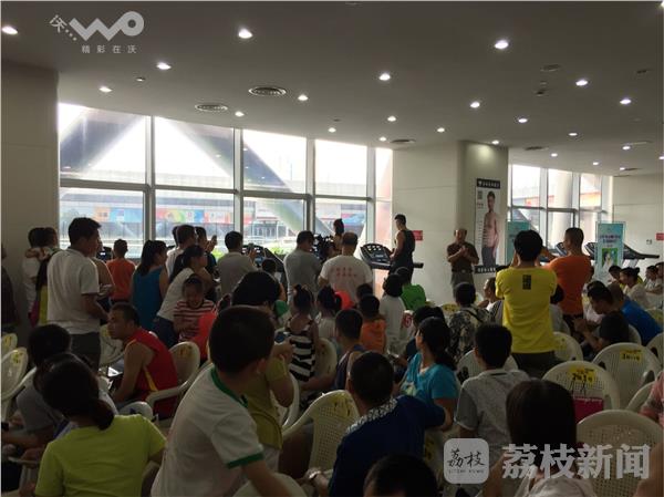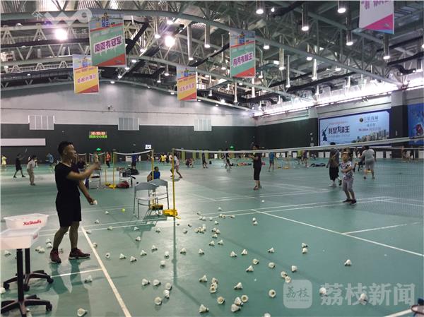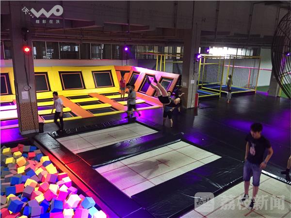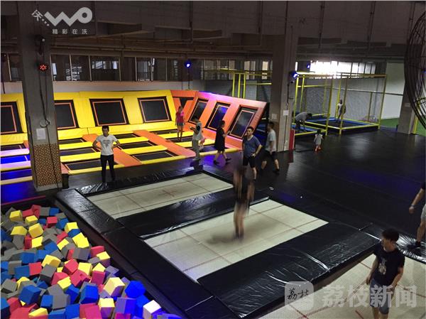 里约奥运如火如荼进行中,今天又迎来全民健身日。徐州的各个体育场馆都推出了面向市民的免费项目,一些最新设置的新颖项目让人爱不释手,在徐州奥体中心地下一层,这个投资1000万元的蹦床场地刚刚营业,今天这里向市民们免费开放,小小蹦床上体验的是跳跃的乐趣、空中行走的魅力以及花样扣篮的潇洒。奥体中心的羽毛球馆,32块场地上已经全部满员,在健身房内,健身爱好者挥汗如雨,奥体中心的游泳馆内,众多的市民体验着免费消暑的清凉。
