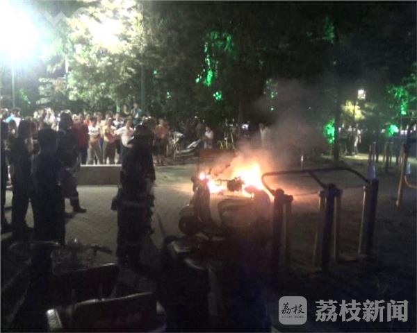 消防队员赶到,铺好水管,展开扑救。现场健身的市民介绍,当时大伙都在健身、跳舞,听到响声才发现这辆车起火,估计是高温自燃。报警人介绍,当时起火车辆靠近健身器械,旁边还停放不少电动车,一旦蔓延过去,全都得遭殃。来健身的热心市民见状,纷纷动手,将周围的电动车搬开,打电话报警。随后,现场明火被彻底扑灭,电动车烧毁,只剩下骨架。目前,起火原因有待进一步调查。