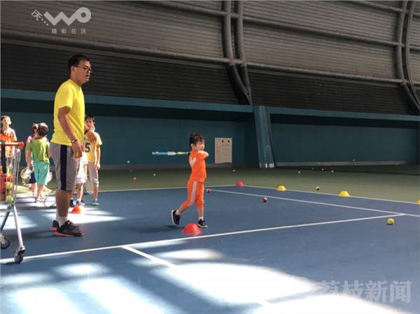 爱好体育运动的亲子家庭越来越多,在南京奥体中心网球馆,今天除了开放免费的网球场地,还举办了儿童网球启蒙活动。十多位孩子在专业教练的带领下,玩起了网球趣味运动,其中年龄的孩子才四岁。小女生朱迪的身高还没竖起来的网球拍高,但是身手灵活、挥拍自如,已经是一名萌萌的网球女将了。朱迪的妈妈告诉记者:“朱迪15个月大的时候,我和他爸爸就带她在球场上练习挥拍、让她捡捡球。一方面锻炼身体各方面协调能力,第二个可以跟小朋友在打网球的过程中去互动、去交流,培养一些团队的意识。”