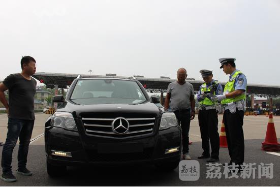 8月5日下午15时许,一辆黑色奔驰越野车在通过机场高速收费站时只粘贴了临牌,并且面对执勤民警的引导指挥有明显的避让动作,形迹可疑,检查站郭健副站长立即对其进行拦截。经检查,驾驶人称自己驾车由徐州送坐在旁边的车主前往南京禄口国际机场乘飞机。