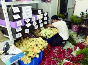 珠江路附近一家花店的 负责人告诉记者,一般都是提前两三天预订,当天订更贵。“还有上百单没来得及做,今晚又要通宵加班赶订单了。”