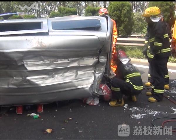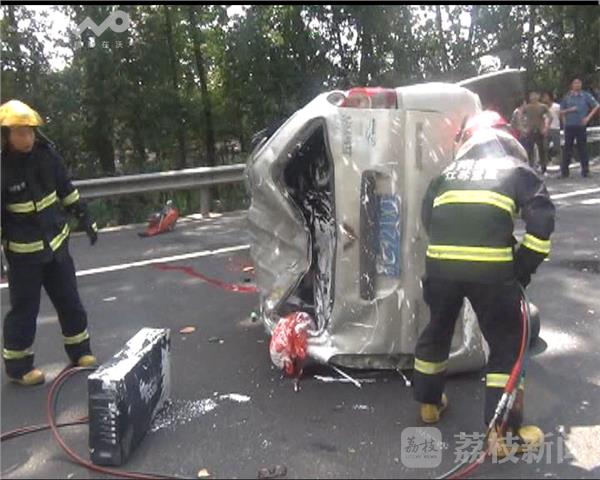 昨天(8月9日)下午2点左右,京沪高速公路扬州宝应段,发生一起交通事故,一辆载有四人的面包车,行驶途中突然失控,撞上隔离带后侧翻,导致两人被困其中。当地交警、消防、医疗等部门接警后立即赶到现场进行救援。驾驶员的儿子介绍了当时的情况。