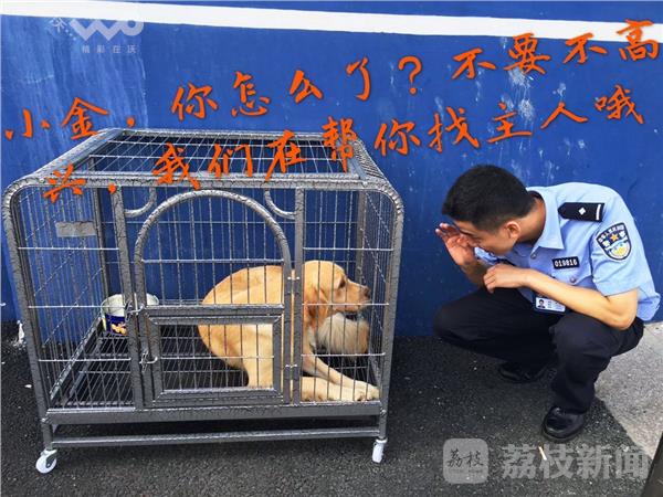 8月8日晚上8点半左右,南京市六合分局龙池派出所接到市民吴先生报警,称自己在龙池湖边发现一条无主人的狗。吴先生在散步时发现一条大狗在龙池湖边,运动一个多小时后发现这条狗还在,天色越来越晚,估计狗主人也在找它,于是吴先生报了警。民警接到报警后立即赶到现场,只见原来是一只“金毛”,“金毛”很干净,民警推断应该不是流浪狗,估摸着散步的时候与主人走失了,于是民警将狗带回派出所,并通过网络发布寻找狗主人启示。