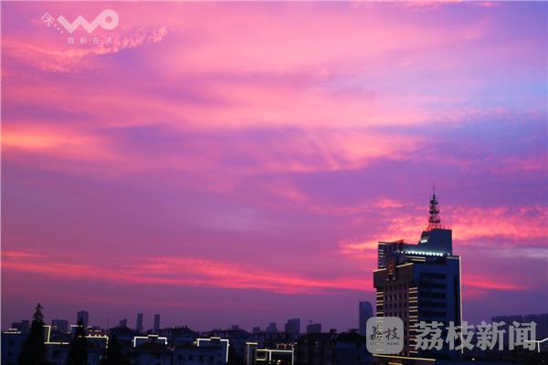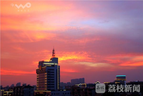 今天(8月10日)傍晚时分,句容西边天空出现了绚丽多彩的晚霞,美不胜收,如火的晚霞把蔚蓝色的天空映照得绮丽炫目,美轮美奂,场面蔚然壮观。不过这么绝美的晚霞持续的时间不长,十几分钟过后,逐渐消失!