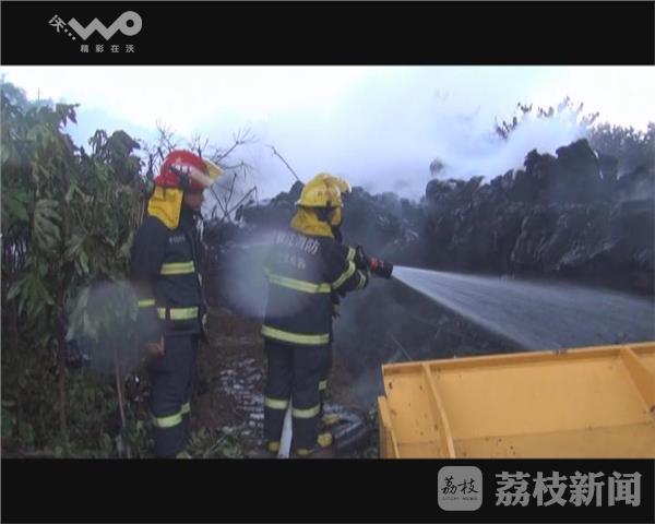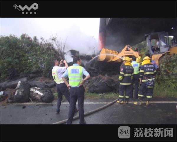 昨天凌晨三点多,镇江一辆货车行驶到沿江高速时,车子突然着火,由于车上装的是海绵,因此火势猛烈。为防止阻碍交通,消防人员将海绵转移到路边扑救。