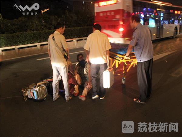 8月10日晚上7点半左右,在南京龙蟠路一处三岔路口地方,两辆电动车在过岔路口时,突然发生相撞,造成一中年女子受伤,倒地不能动弹,另一男子无大碍。随后,受伤女子报警,110和120迅速赶到事故现场。经医生检查女子左大腿受伤严重,并将其受伤女子送往附近东大医院救治。