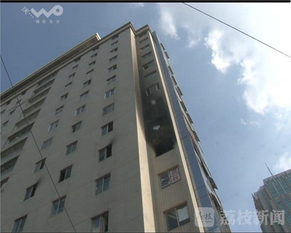 引发火灾的是7楼外的一个空调外挂机,现场火势蔓延得很迅速,外墙瓷砖都被烧脱落,直接将楼下停放的一辆出租车后窗玻璃砸了一个窟窿。