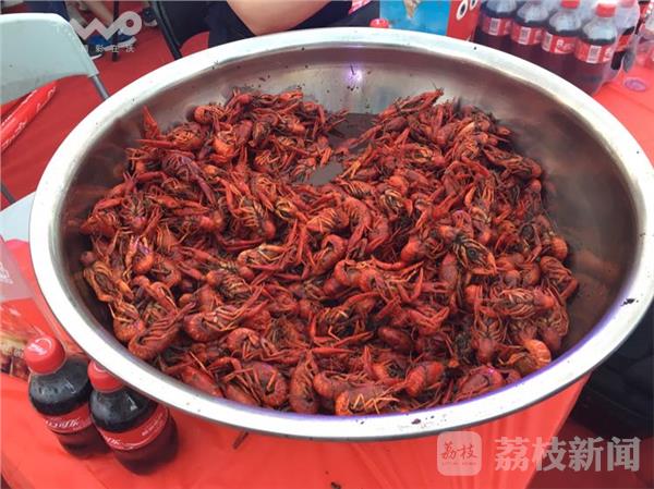 “小龙虾正在赶往玄武湖的路上,它们已经加快了步伐……”当天现场火爆,前来围观用餐的观众已经远远超过了主办方的预想,虽然当天有多家店铺供应小龙虾,但还是出现断货的现象,排队领取龙虾的队伍已经长达百米,主持人多次以幽默的方式通报小龙虾的补货情况。现场的很多观众都是带上家人或者约上三五知己前来,朋友们围坐在玄武湖边,一起吃龙虾,喝可口可乐,畅叙旧情。