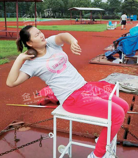 江苏省残疾人体育训练中心位于南京市浦口区,22岁的邹莉娟目前就在那儿集训。邹莉娟是江苏徐州人,她是我市2013年引进的运动员,落户扬中。现在,她早已把自己当成一名地地道道的扬中人。9月,她将坐着轮椅代表国家参加F34级别的铅球和标枪项目比赛。
