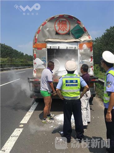 8月13日中午上午11时许,宁连高速南京段正是烈日当头,南京高速七大队三中队民警夏冰带领警组4名年轻警辅依托宁连主线收费站开展交通违法整治。11时15分左右,正当民警拦截下一辆超速车辆准备收取证件时,听到身后警辅郭健一声惊呼:“你们快看,那辆车怎么了!?”随后便传来其余几位警辅的惊呼声。民警闻讯立即放下手中工作,转声向远处一望,不禁倒抽一口凉气:只见一辆危化品运输车正在向淮安方向疾驰而去,该车后方槽罐大量喷出白色不明气体,而这辆危化品运输车后方高高挂着一个醒目的“爆”字!适逢周六节假日,大量市民驾车出行,高速上车流不息,车辆如此密集之下,爆炸气体一但遭遇明火发生爆炸,后果不堪设想!