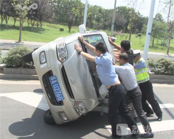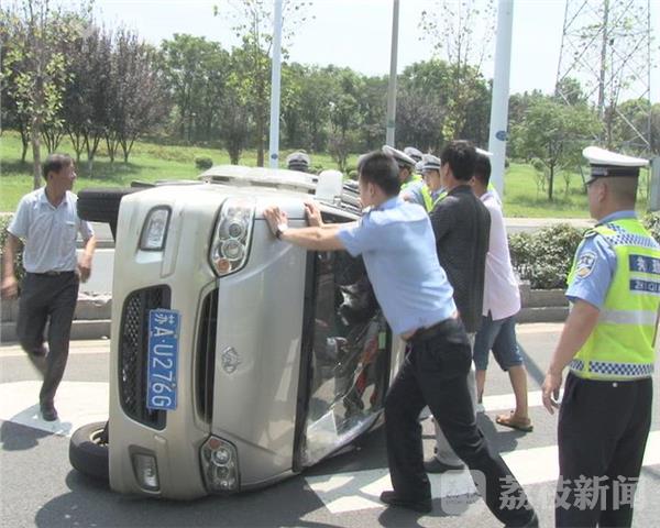 据开车的司机张某说:“自己今天上午是从合肥到扬州干活,车上连自己总共坐三人。车速也不快,也就80码不到的样子,当车子行驶到这里的时候,方向盘突然打摆,自己就控制不住了,接着车子就猛的反了过来,一下子滑行有50米的距离。当时幸亏自己扣了安全带,不然把自己甩出去命都没了。”