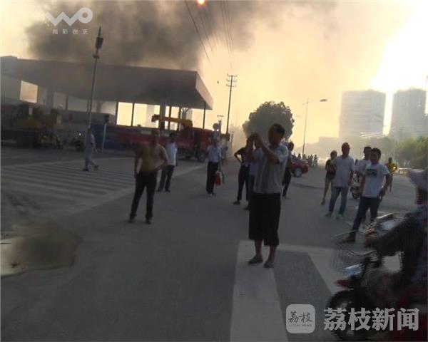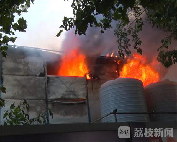 昨天(8月15日)下午5点多钟,南京六合一家加油站旁的工地突然起火,火势蔓延迅速,情况十分危急,当地消防接到报警后立即赶到现场灭火。在通往工地的路上,老远就看到火灾现场浓烟滚滚,着火的地方是工地的一处板房,熊熊烈火不断从房间内喷出,而在距离着火点不到50米的地方,就是一处加油站,消防队员赶到现场后立即架起三只水枪灭火,然而,如此大的火,有的民工还试图冲进火场抢救财物,被救援人员一把拦了下来。
