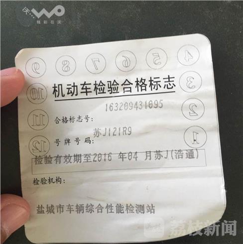 2016年08月15日9点多,盐城交警支队机动大队民警童汉祥和朱亚华在范公路辅道执勤时,发现一辆浙AN5***绿色东风牌小型面包车的驾驶员神情紧张,眼神明显躲着民警。执勤民警遂示意该车靠边接受进一步检查,经核查发现驾驶人汪某未随车携带驾驶证、驾驶座后面的两排座椅均被拆除。民警发现该车虽粘贴在有效期内的年检标志,可经警务通核查发现该车却已经过了年检的有效期,经民警对年检标志进一步检查,发现年检标贴竟是苏J12***车辆的!