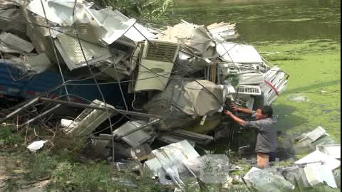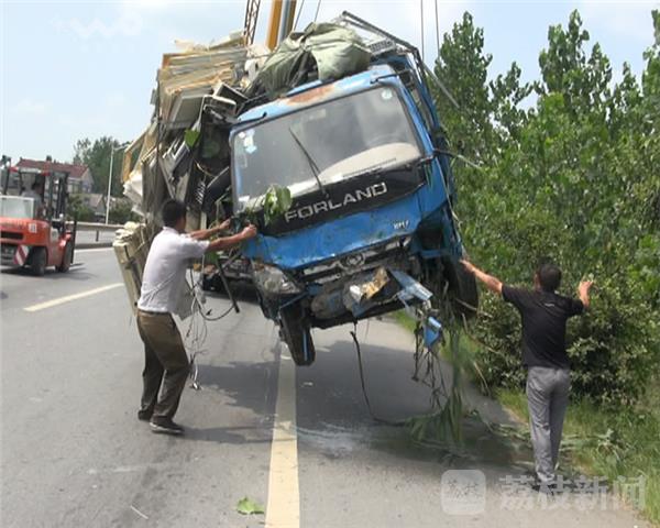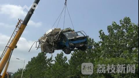 8月16日上午10点多钟,盐城市大丰区大刘路一辆小型货车装满一车废塑料,当货车行驶到该路段时,驾驶员发现方向盘有什么东西卡住了,就低头查看,当他低头查看时货车没有减速,于是方向开始向右偏,这下撞倒路边十几棵树,随后车辆又冲到河里,幸运的是货车撞树后车速不快,只坠到河边处较浅的地方。驾驶员自己也很后怕,说今天幸运捡回一条命,事故发生后他自己从驾驶室爬了出来并报了警。