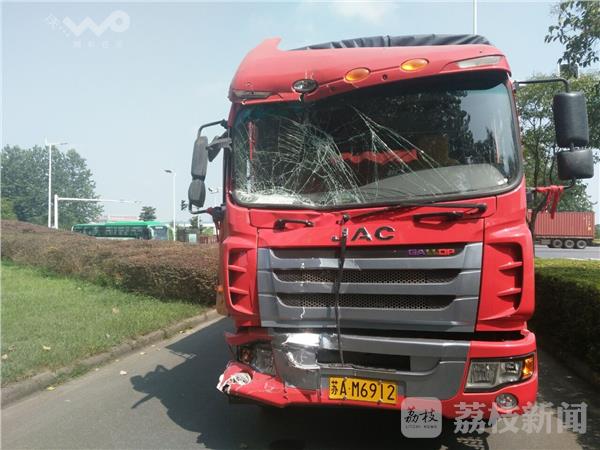 8月17号今天上午9点左右,在扬州沿江公路与扬子江路交叉口西端红绿灯下,一辆从镇江火车站南广场开往新民州的公交停车等红灯时,突然后面一辆加速想超车的货车不知情追尾上公交尾部,导致公交车惯性前行几米远,公交车上两人受轻伤,公交尾部受损严重,货车头部也不同程度撞坏。