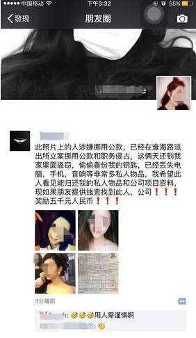 李某告诉民警,自己根本没有挪用公款,也没有偷东西,一切都是小张编造出来的。小张还在微信朋友圈里发布了 " 通缉令 ",弄得李某跟逃犯似的,一个月都没敢出门。现代快报记者了解到,原来小张搞这么多事,就是为了逼李某现身。而李某之所以离他而去,是因为他有家暴的恶习。