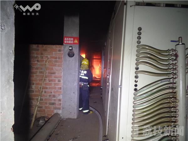 据现场工人介绍,起火原因是当时设备通电的瞬间高压打火把设备打起火的,设备内部大约有三至四吨的变压油。