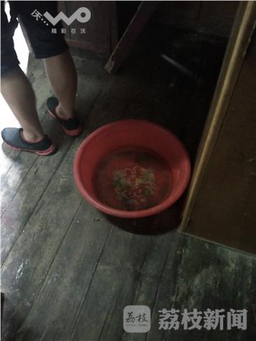 居民赵女士 :“昨天晚上漏了两盆水,像接龙一样,昨天晚上我接了好几盆,这个是今天早上下雨接的水。”