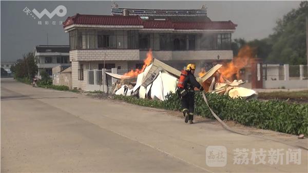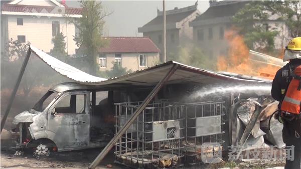 8月20日14时47分,南通市通州区金沙镇正场利民村一辆载满环保油的面包车突然起火,大火顺势将面包车停靠的活动板房引燃,同时流淌的环保油也被点燃并流到农田里。消防指挥员下令先出一支水枪对火势进行打击,同时立即寻找水源进行供水,由于地面有大量流淌火,消防队员随即再出一支水枪对火势进行打击,同时另一支水枪转移到火场东边对流淌火进行打击。随后增援力量相继到场,增设两支泡沫枪对火势进行打击,经过2个小时的扑救,火被扑灭。据小面包车驾驶员称,活动板房里面存放的是环保油,里面大概有1吨左右,面包车上也有三四百斤环保油,着火是从面包车下面两个桶旁边开始烧的,当时看到有火时驾驶员就去关掉电源,并一边报警一边去疏散周围的居民。