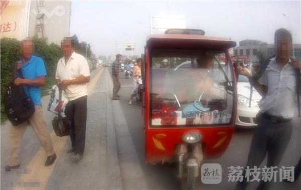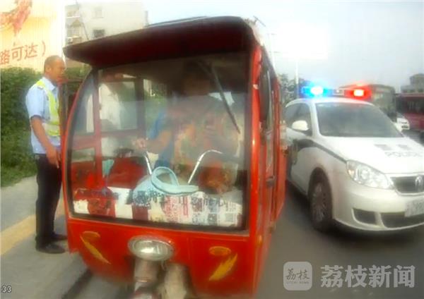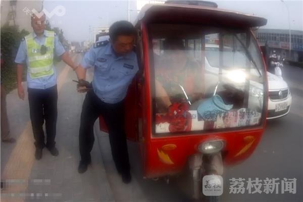 当天中午,徐州交警九里大队民警,在巡逻至310国道与311国道交汇处时,发现这辆“红棚子”电三轮行驶途中晃晃悠悠,从车窗看上去车内拉了不少人,交警立即将其截停对其进行检查。