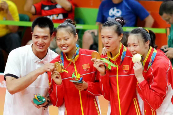 女排国家队中来自江苏的李童(陪练)、龚翔宇、张常宁、惠若琪