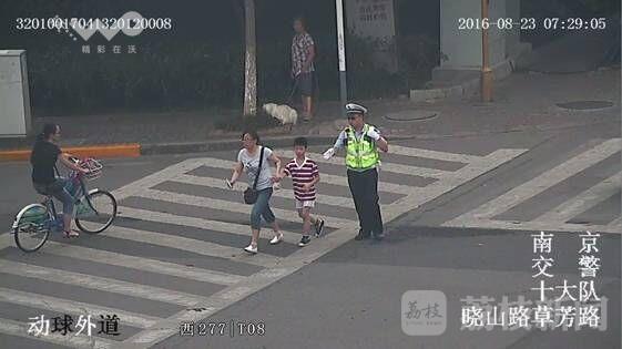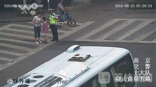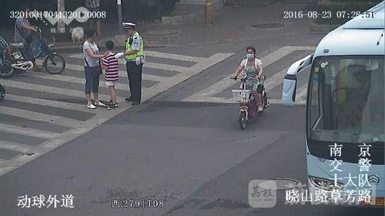 今天,8月23日清晨正值早高峰,南京交警十大队辖区草芳路口,一8岁小男孩抽泣着向正在执勤的二中队民警杨晓春求助,称自己的妈妈不见了。杨晓春用手抚摸着孩子的头发,安慰道:“别哭!别哭!叔叔一定帮你找到妈妈,别担心!”得知孩子是偷偷跟着母亲出门这一情况,一边安抚着惶恐不安的孩子,一边询问孩子父母的联系方式。