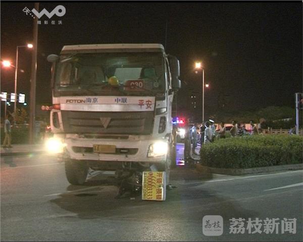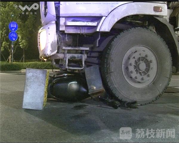 昨晚10点,南京建邺区黄山路与江山大街路口,一辆助力车过马路时,被一辆 混凝土搅拌车撞倒,拖行了近10米远。