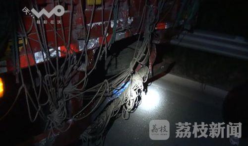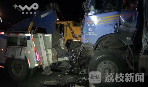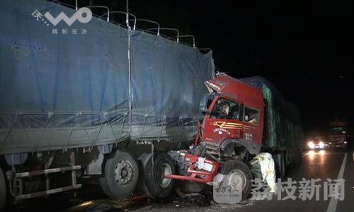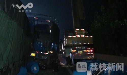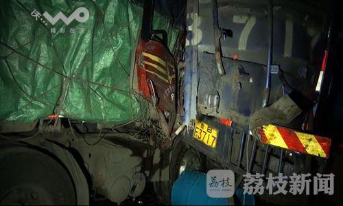 8月25日晚上9点钟左右,在国道228线盐城射阳县利民河大桥上,一辆由南向北行驶的货车刹车不及,追尾撞上前方一辆停在那里等红绿灯通行的货车,在巨大的撞击惯性作用下,该货车又与前面一辆货车发生追尾碰撞,事故导致肇事货车上一名坐在副驾驶座位的男子被困在变形的驾驶室内,三辆货车不同程度损坏。接到报警,射阳交警、消防、清障人员火速赶到现场,展开救援工作。