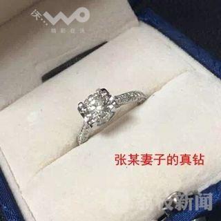 经审查,张某交代了自己的作案经过。原来,今年5月,一个偶然的机会,张某在一家网站看到有一款用莫桑石做的戒指和妻子现在戴的一款真钻戒十分相像,但价格差了一大截,他觉得好玩,便买了下来。此后,妻子让他用自己的真钻戒和一个价值4万元的翡翠挂件去以前购买首饰的专柜以旧换新,他便带着两件东西去换了,并按折价补差价两万元,买了价值12万余元的翡翠挂件。