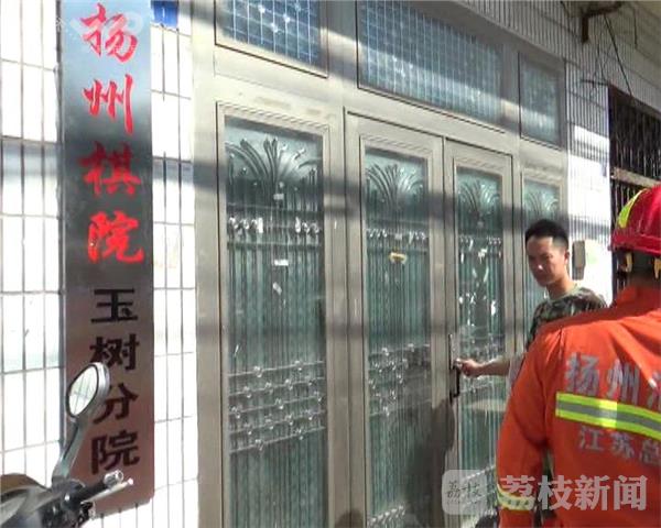 8月27日下午2点30分左右,扬州市邗江区酒甸镇弘扬南路一棋室内,三名五六岁大幼童在玩游戏时将门关上,不料门被锁死,老师使尽浑身解数也没能打开,心急如焚,生怕出什么差子。这时,老师一直哄孩子们说,大家还在玩游戏,不要害怕,直到消防队员接警赶到,将孩子成功解救出来。事发的这家棋室沿街楼房,金属大门紧锁,从外面打不开,几个孩子困在里面。消防队员勘察后发现,棋室只有一个入口,立即架起金属梯,从二楼窗户钻进进,尝试从内部开门。为防孩子见到生人紧张,老师不时在哄孩子。消防员进屋后,试图从里面打开房门,发现门锁已经损坏,钥匙也没用,只得从内部拽门,强行将门打开。三名小朋友两男一女,都在五六岁大,很“淡定”,安静地坐在凳子上,仍以为在跟老师做游戏。