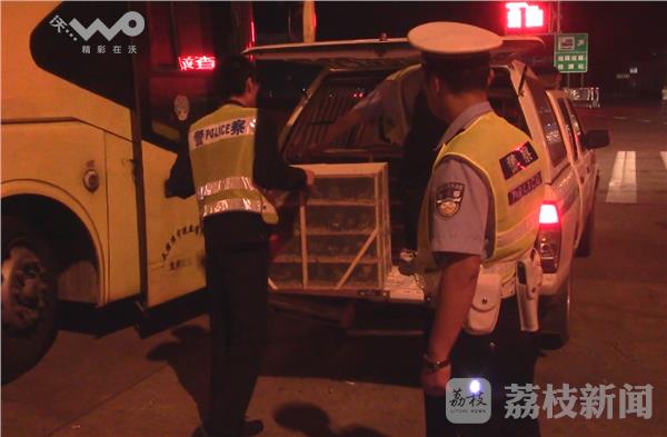 8月28日晚上9点多,徐州交警红花埠公安检查站民警,在京沪高速苏鲁省界收费站对一辆大客车进行检查时,发现客车行李厢内传出叽叽喳喳的鸟叫声,民警赶紧让驾驶员打开车辆行李箱,发现有好几笼野生鸟类,经过清点数辆达500余只。