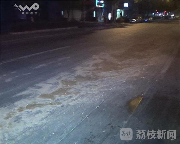 8月28号晚上9点多钟,扬州施桥北路联华超市附近,一辆电瓶车男子骑车避让车辆刹车时,由于地面被渣土车抛洒了许多黄沙,电瓶车连人滑到在地不能动弹,随后施桥警察赶到现场和群众一起将男子抬到路边安全区域,避免受到路上车辆二次伤害,而这样的事故在这一路段已经不是第一次发生了。