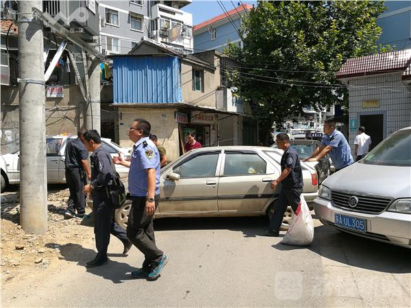 在接获前期多起市民举报后,今天(8月29日)下午16:30分左右,南京鼓楼区阅江楼街道停车办联合交警六大队,对位于驴子巷34号一小区门前的2两辆“僵尸车”现场实施了清拖作业,清拖过程中,虽遇其中一名车主试图阻拦,,但终被警方“说服”,放弃抵抗,清拖作业总体顺利,附近居民拍手称快。