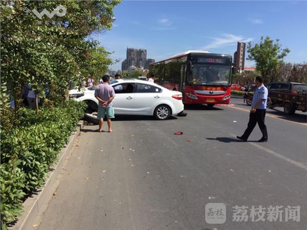 荔枝新闻通讯员赶到现场时伤者已被送往医院救治,只见在马路西侧,一辆白色轿车头西尾东撞在绿化带上,车身驾驶室已变形,可见事发时的巨大惯性。在轿车东侧七丶八米开外地上倒着一辆大架摩托车,己经撞的散架。目击者说,事发时,轿车从西侧人行道慢慢拐弯驶上快车道准备向南,由于疏于观察,突然发现了由北向南正常行驶的摩托车,慌乱之中,女司机疑把油门当刹车,只听轰的一声巨响,摩托车被腾空撞飞,车上两名大人当即倒地不省人事,而十岁女童则被卷入车轮下,这时,路过市民纷纷伸出援手,其中一名男子用工具拆下了轿车左前轮,在数十位热心市民的齐心合力下,轿车被抬起,女童被成功救出,三人被成功送往医院救治,事故原因交警正在进一步调查处理中。