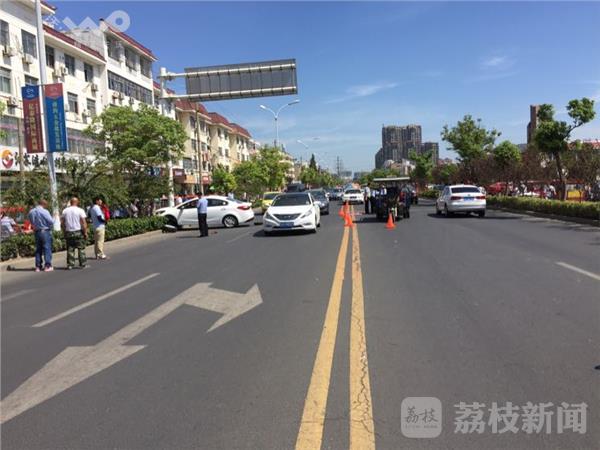 今天(30号)上午十点多钟,在淮安市涟水县金城南路郑梁梅中学门前发生一起车祸,一辆轿车在拐弯时撞上了后方行驶的摩托车,致使摩托车上三人倒地,其中一名十岁女童被卡轿车车轮下,千钧一发之时,附近过路群众联手抬车救人。